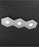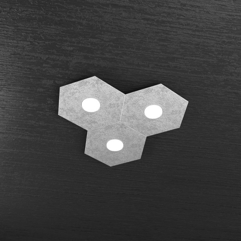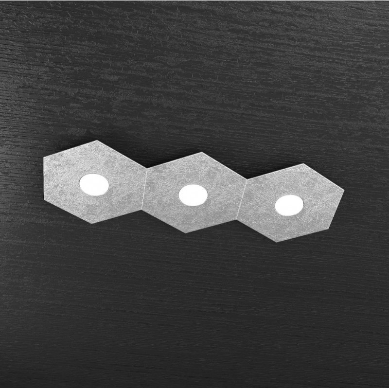 Questa composizione predefinita dal produttore fa parte della collezione Hexagon ed è composta da 3 elementi a forma di esagono realizzati in lastra sottile di metallo verniciato con elegante finitura in foglia argento.