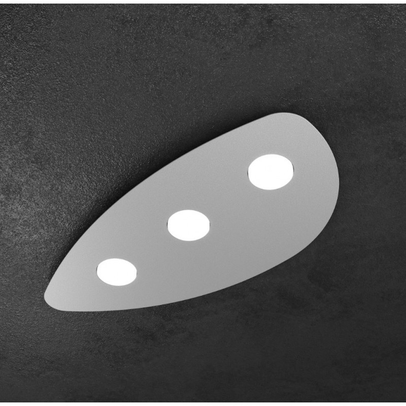 Questa plafoniera della collezione Shape è composta da un diffusore realizzato con una sottile lastra di metallo verniciato grigio.