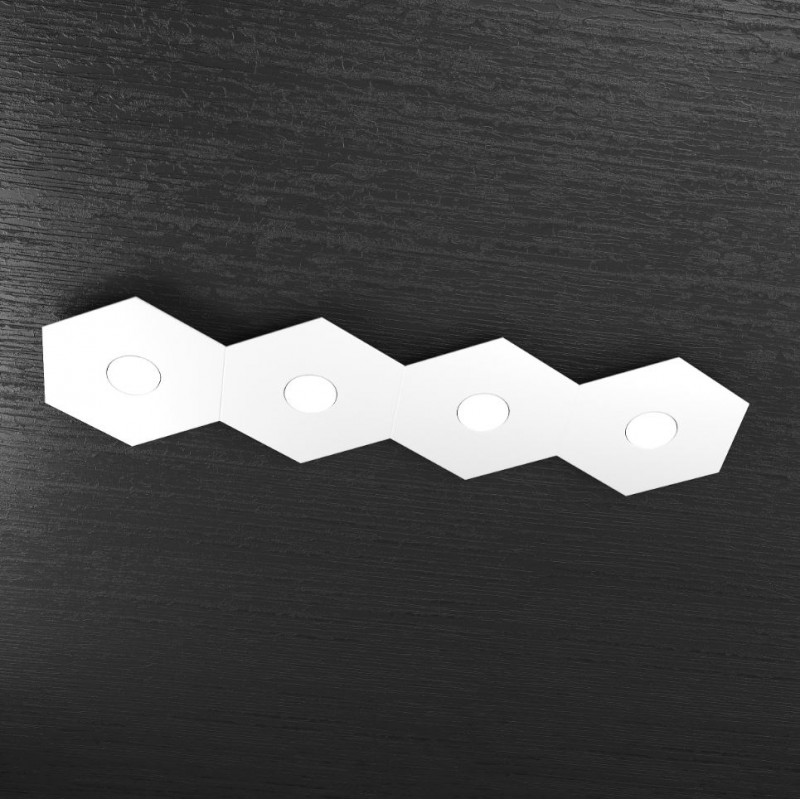 Questa composizione predefinita dal produttore fa parte della collezione Hexagon ed è composta da 4 elementi a forma di esagono realizzati in lastra sottile di metallo verniciato bianco.