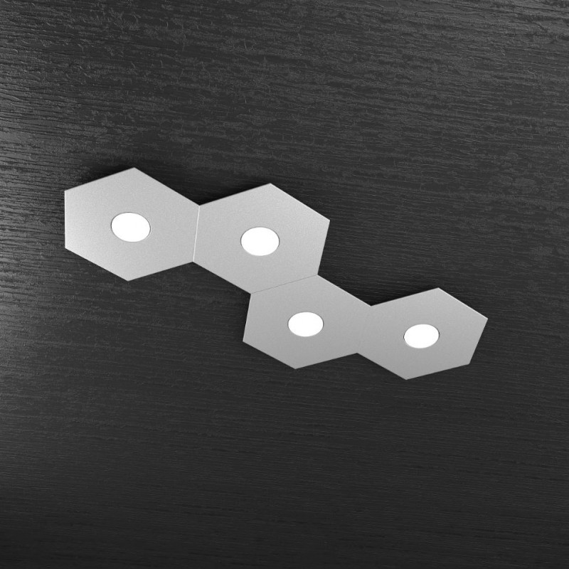 Questa composizione predefinita dal produttore fa parte della collezione Hexagon ed è composta da 4 elementi a forma di esagono realizzati in lastra sottile di metallo verniciato grigio.
