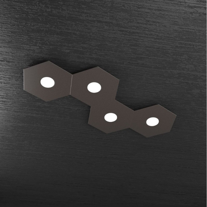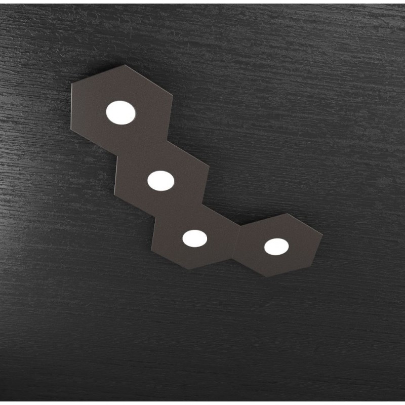 Questa composizione predefinita dal produttore fa parte della collezione Hexagon ed è composta da 4 elementi a forma di esagono realizzati in lastra sottile di metallo verniciato marrone.