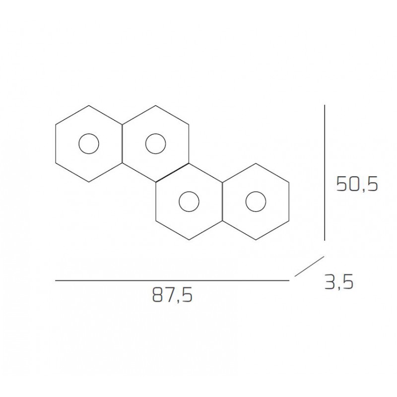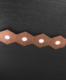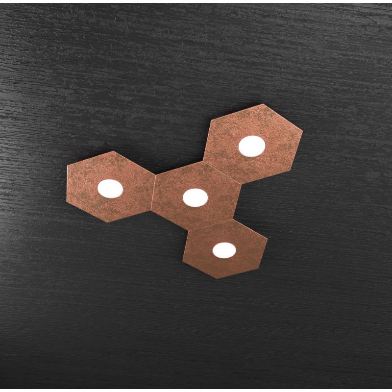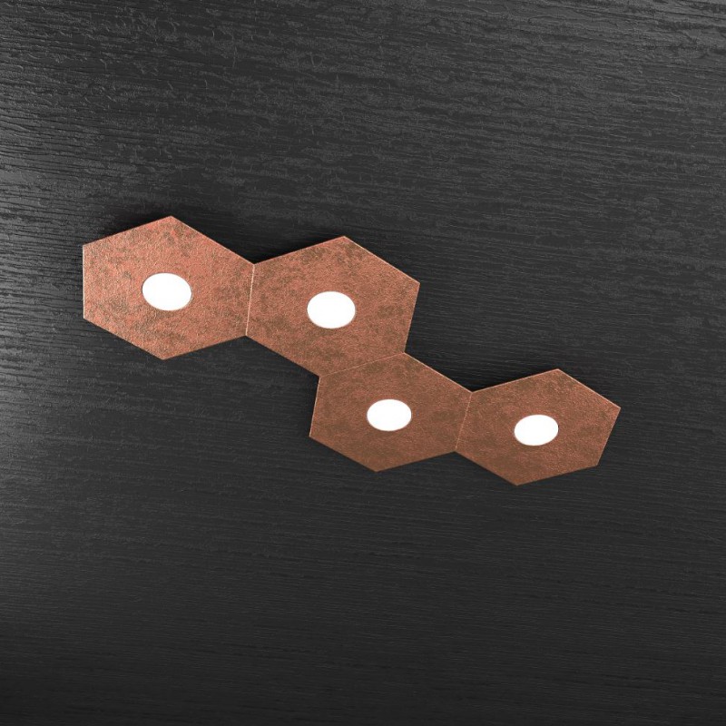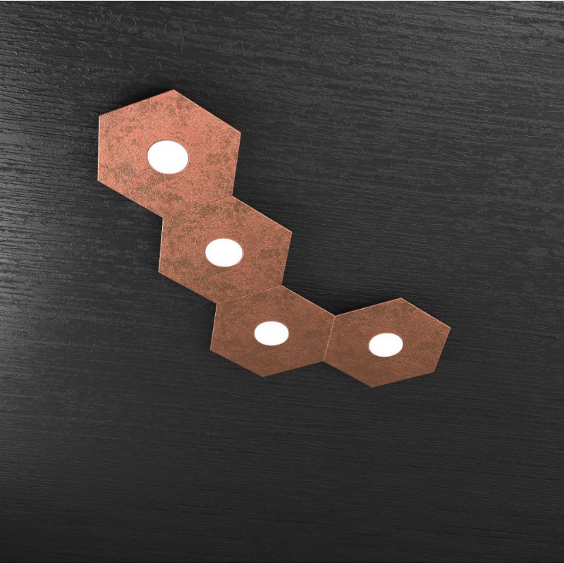 Questa composizione predefinita dal produttore fa parte della collezione Hexagon ed è composta da 4 elementi a forma di esagono realizzati in lastra sottile di metallo verniciato in foglia rame.