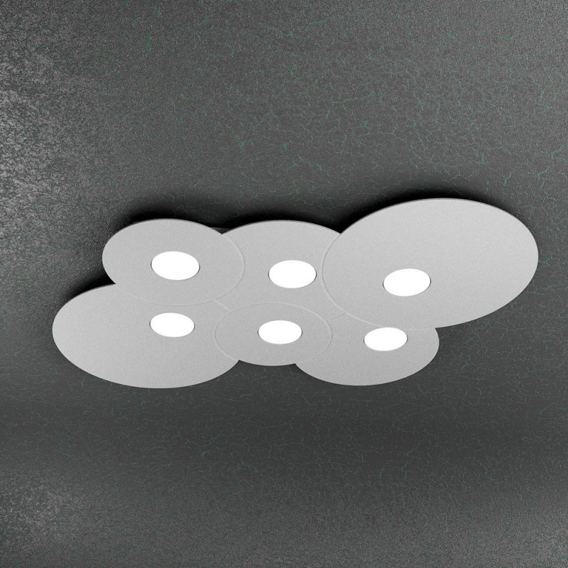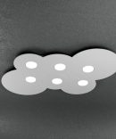 Questa plafoniera della serie Cloud, prodotta dal brand italiano Top Light, è composta da una sottile lastra in metallo verniciato, con incisioni che ne definiscono la forma.