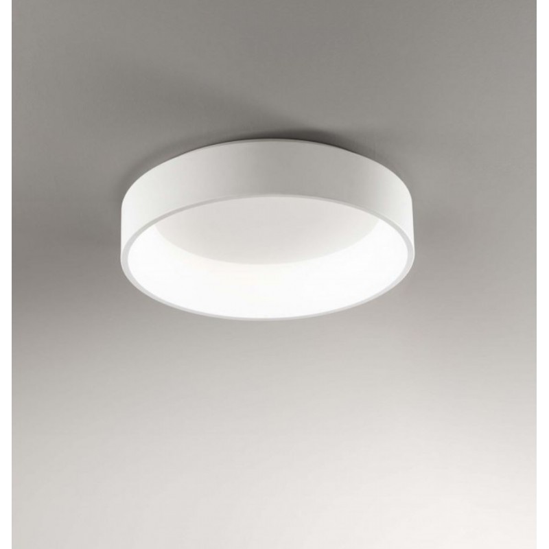 Plafoniera della serie BAND DIODI di Affralux, composta da struttura circolare (diametro 60 cm) in alluminio verniciato bianco satinato e diffusore in PMMA.