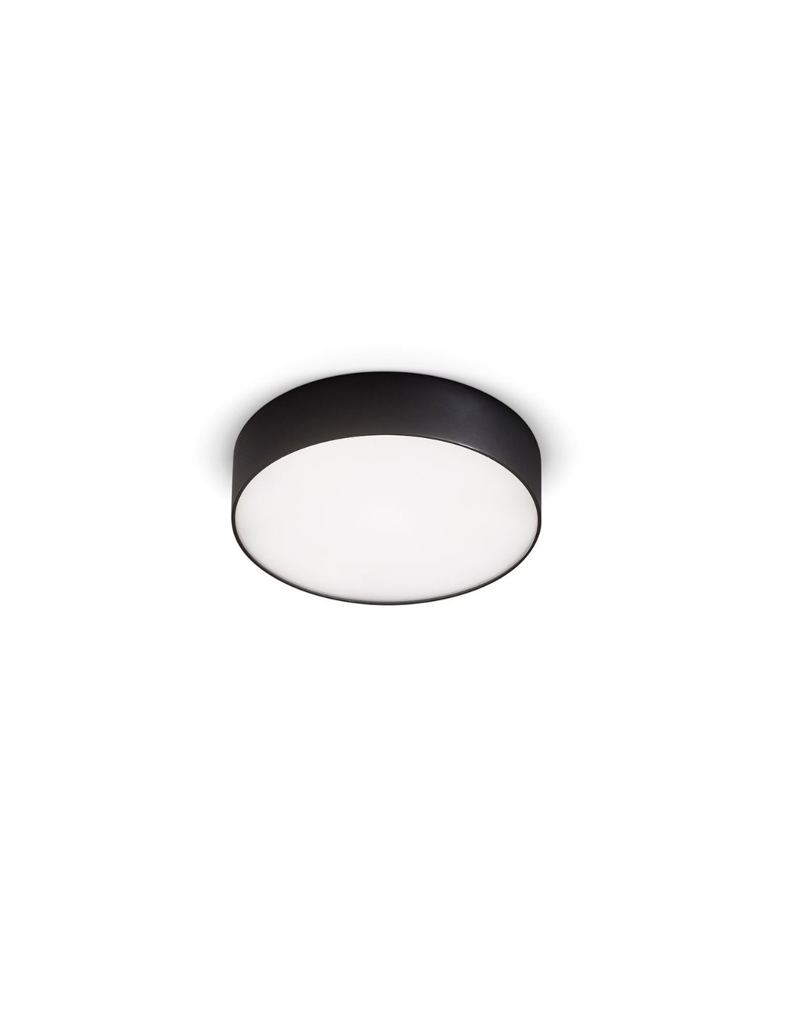 Questa lampada da soffitto per interni é realizzata con struttura in alluminio finitura nero opaco e diffusore in metacrilato.
