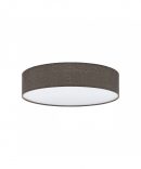 La plafoniera PASTERI del brand EGLO presenta un profilo in metallo e policarbonato finitura bianco con paralume dal diametro di 57 cm realizzato in lino di colore marrone.