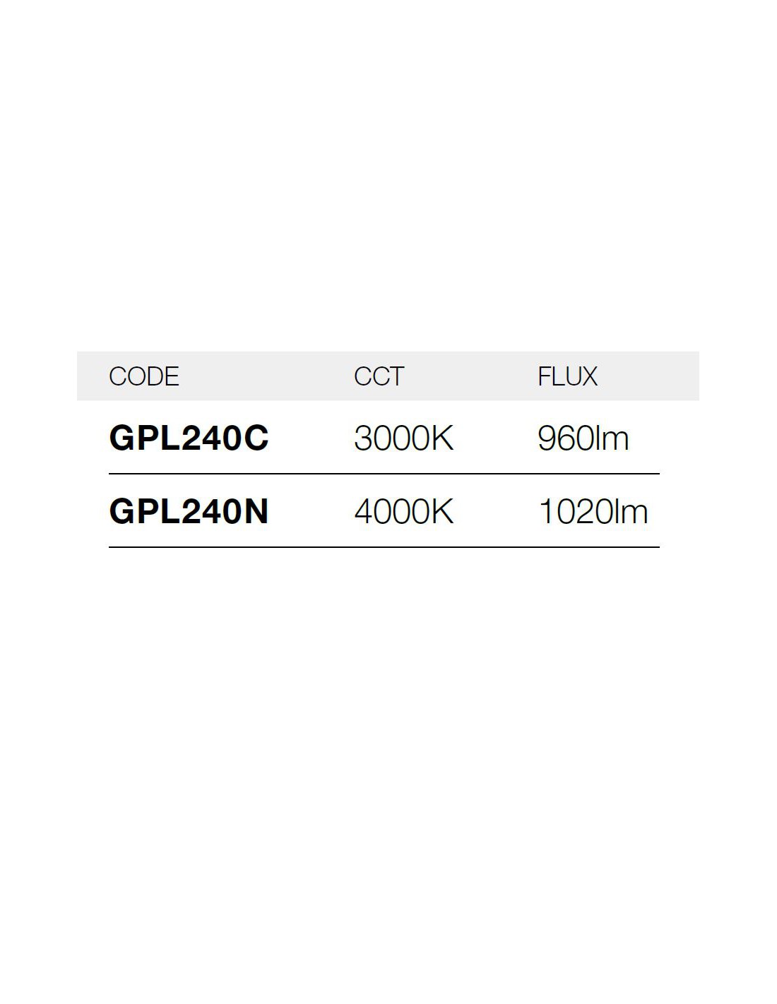 - Lampadine: LED 12W 3000K 960LM / 4000K 1020LM