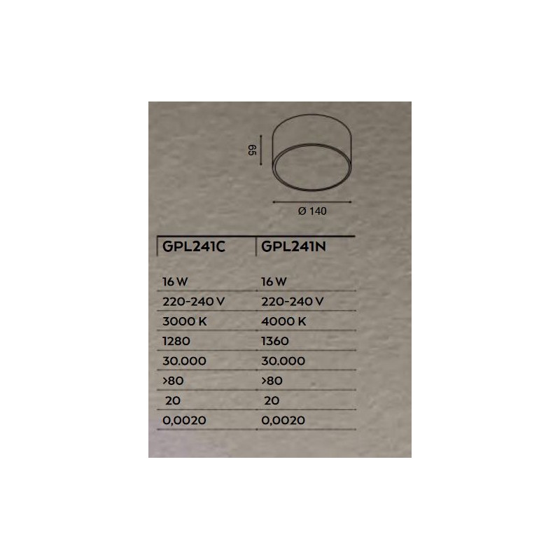 - Lampadine: LED 16W 3000K 1280LM / 4000K 1360LM