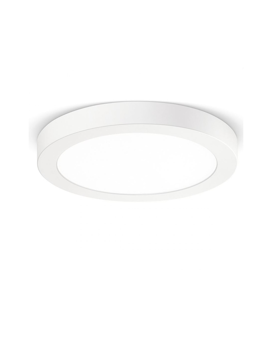 Questa plafoniera é composta da struttura rotonda in materiale termoplastico diametro 22,5 cm, finitura bianco opaco, e diffusore in plastica anti abbaglio.
