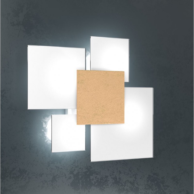 Questa plafoniera della collezione Upgrade è composta da 4 elementi di forma quadrata realizzati in vetro extrachiaro bianco con una piastra frontale decorativa in metallo disponibile in diverse finiture: bianco, grigio, sabbia, marrone, grigio antracite, foglia argento, foglia oro e foglia rame.