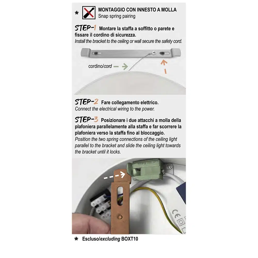 La plafoniera integra una sorgente luminosa a Led da 80 con una resa luminosa di 4638 lumen ed è dotata di interruttore Switch grazie al quale, in fase di montaggio, potete scegliere di impostare una luce bianca calda 3000k oppure una luce bianca naturale 4000k; ha, inoltre, un sistema di montaggio facile e rapido grazie al suo aggancio a molla. Lampada ideale per l’illuminazione di corridoi, ingressi, vano scala, camera da letto, salotto, cucina oppure di un ufficio.