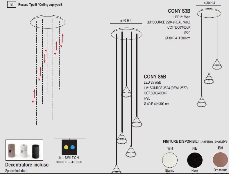 Lampada CONY S3B di PROMOLUCE. Il lampadario CONY S3B consente di adattare l’illuminazione alle proprie preferenze o alle diverse situazioni, come una luce più calda per creare un’atmosfera accogliente in una sala da pranzo o una luce più fredda per una migliore illuminazione in una cucina, grazie ad un kit led CCT, che sta per Correlated Color Temperature, ovvero temperatura di colore correlata. Questo modulo permette di selezionare l’intensità e il colore della luce che si desidera ottenere. Per esempio, è possibile scegliere tra una luce più calda simile a quella delle lampadine tradizionali o una luce più fredda simile a quella della luce naturale diurna. In sintesi, CONY S3B offre un’illuminazione personalizzabile e conveniente, adatta a diverse esigenze e stili di illuminazione. Disponibile in tre colori: bianco, nero e oro rosato