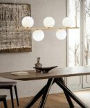 • Redo Group Talis lampada da sospensione, struttura in metallo finitura bronzo spazzolato diffusore in vetro soffiato bianco opale.