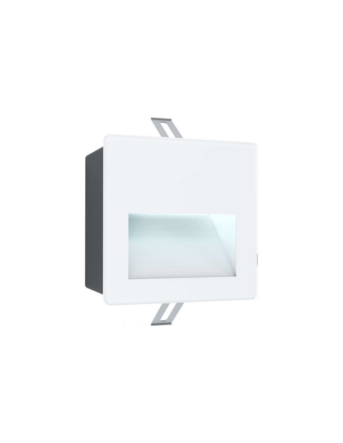 La lampada da incasso ARACENA del brand Eglo presenta una struttura quadrata in lega di alluminio finitura bianco e diffusore in tinta con la struttura, rivolto verso il basso.