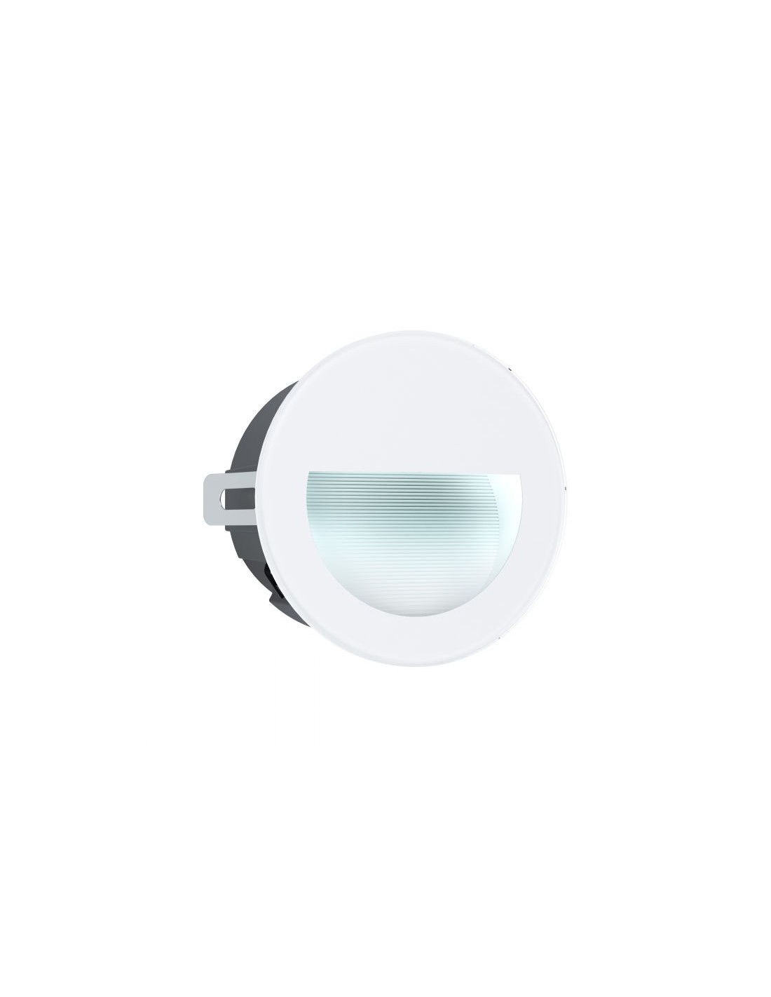 La lampada da incasso ARACENA del brand Eglo presenta una struttura rotonda in lega di alluminio finitura bianco e diffusore in policarbonato in tinta con la struttura, rivolto verso il basso.