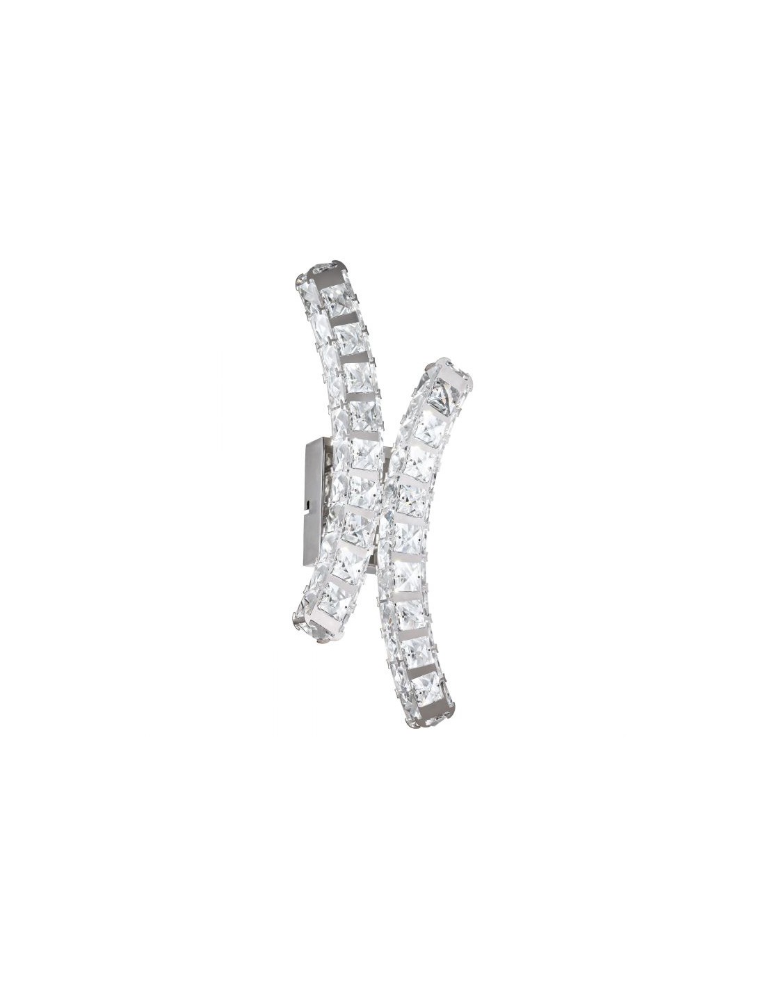 L’applique TONERIA del brand EGLO presenta una struttura in acciaio inox cromato con cristalli decorativi che ne impreziosiscono la forma.