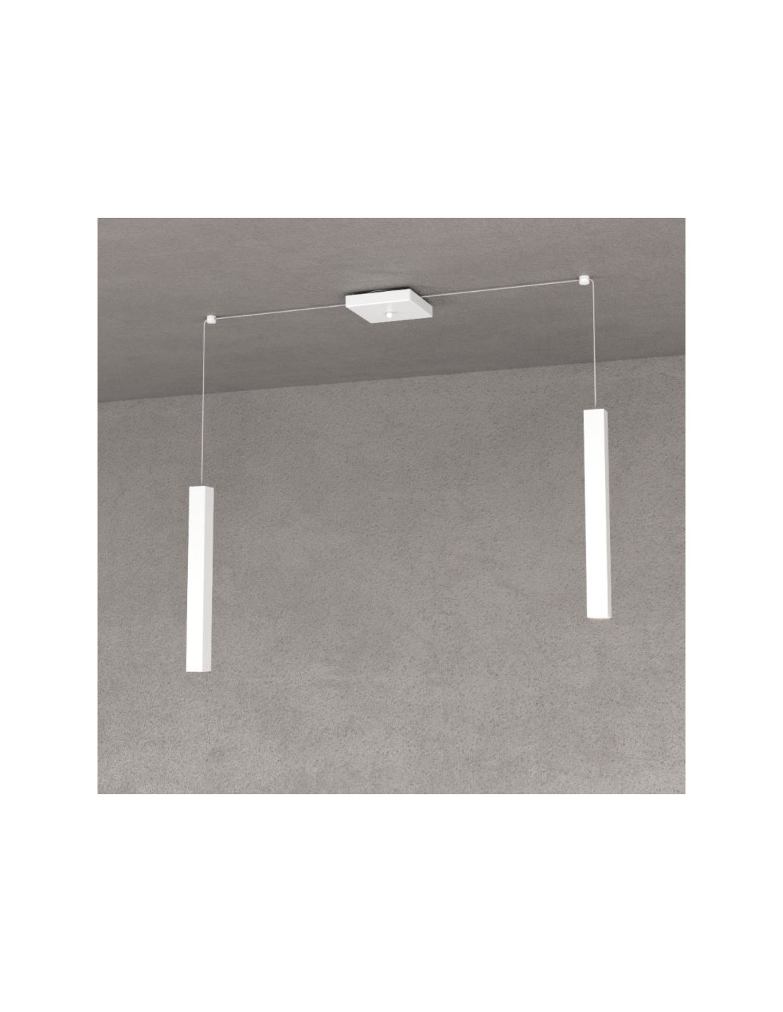 SQUARE TUBE S2 é una lampada a sospensione del brand italiano Top Light, realizzata con 2 elementi tubolari a sezione quadrata in metallo ultrasottile verniciato bianco, rosone quadrato e cavi regolabili in lunghezza. Dotata di sistema di decentramento mediante cui é possibile posizionare i diffusori distanti l’uno dall’altro in base alle vostre esigenze di illuminazione.