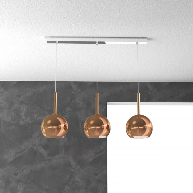Sospensione 3 luci Future vetri Ø 15cm rame 1155/S3 RP Top Light