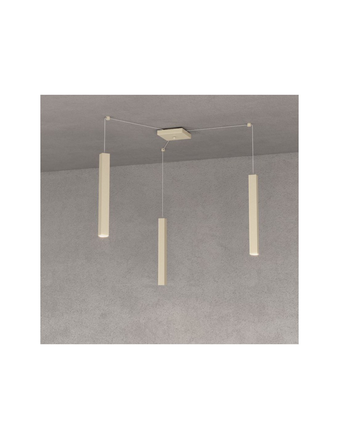 SQUARE TUBE S3 é una lampada a sospensione del brand italiano Top Light, realizzata con 3 elementi tubolari a sezione quadrata in metallo ultrasottile verniciato sabbia, rosone quadrato e cavi regolabili in lunghezza. Dotata di sistema di decentramento mediante cui é possibile posizionare i diffusori distanti l’uno dall’altro in base alle vostre esigenze di illuminazione.
