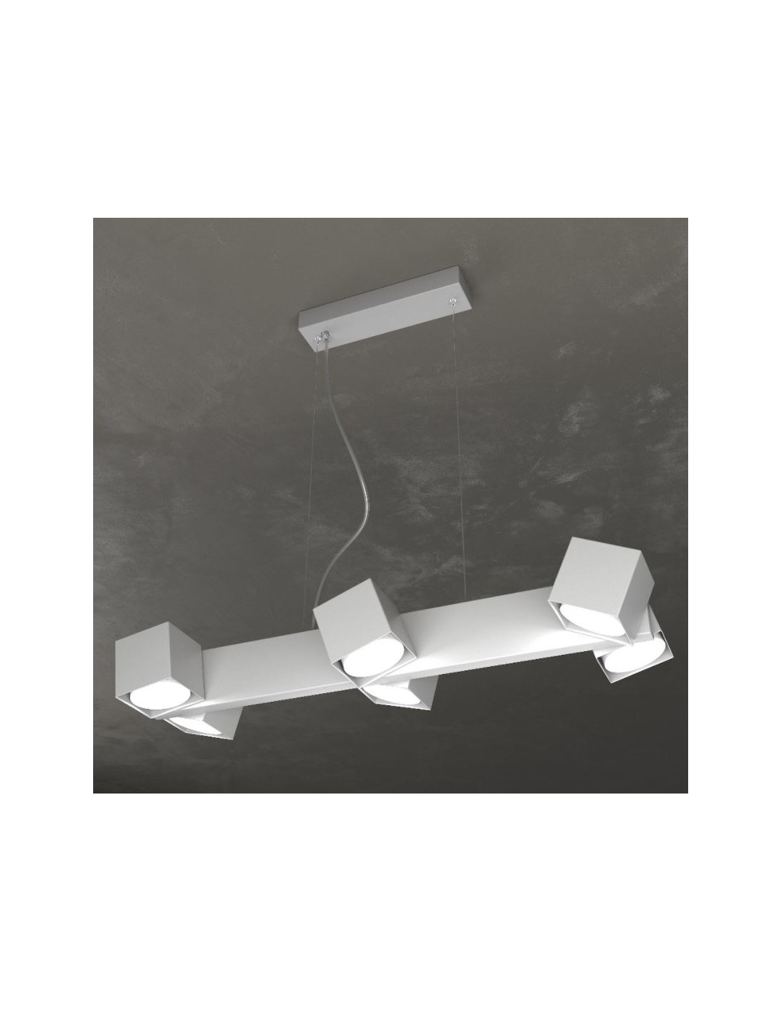 ROTATION S6 é una lampada a sospensione del brand italiano Top Light, realizzata con struttura lineare in metallo verniciato grigio con 6 cubi roteanti a 360° che permettono di orientare la luce in tutte le direzioni semplicemente modificandola all’occorrenza.