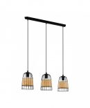 La sospensione ANWICK del brand EGLO presenta una struttura in metallo finitura nero e 3 diffusori a cupola decorati con intreccio in fibra naturale.