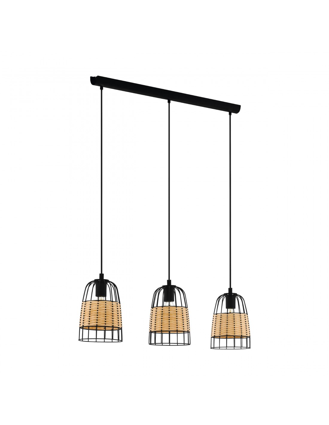 Sospensione Anwick 3 Pendel Nero E Rattan L88 cm Eglo