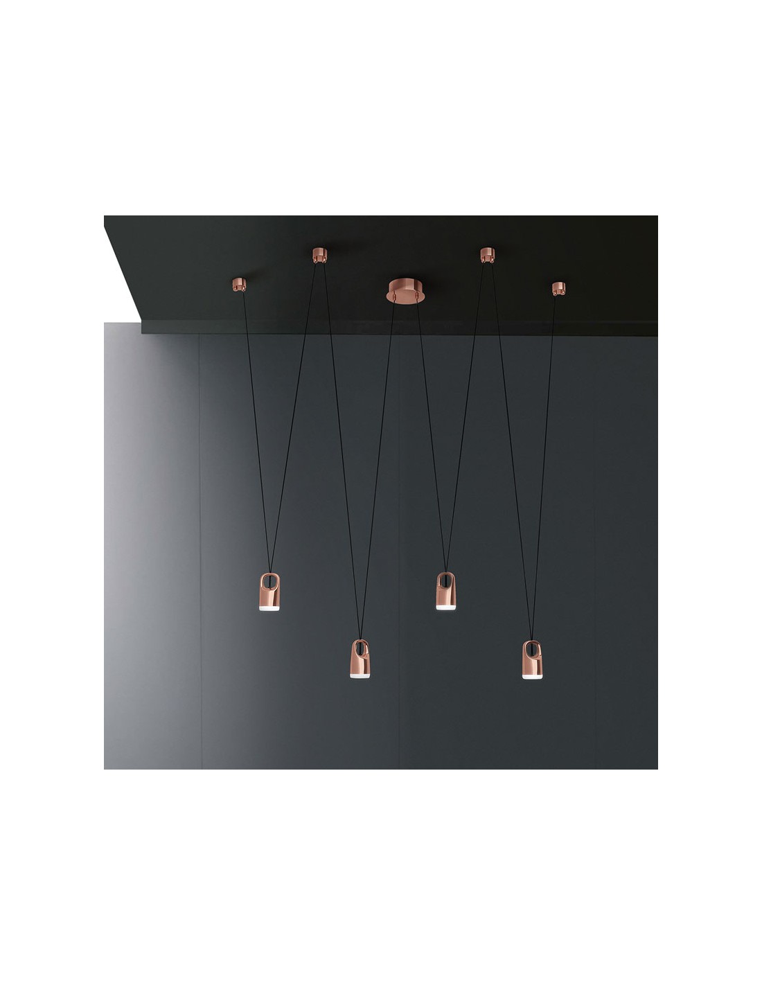 Sospensione Bag Oro Rosa 4 Led Sistema Decentramento Vivida International