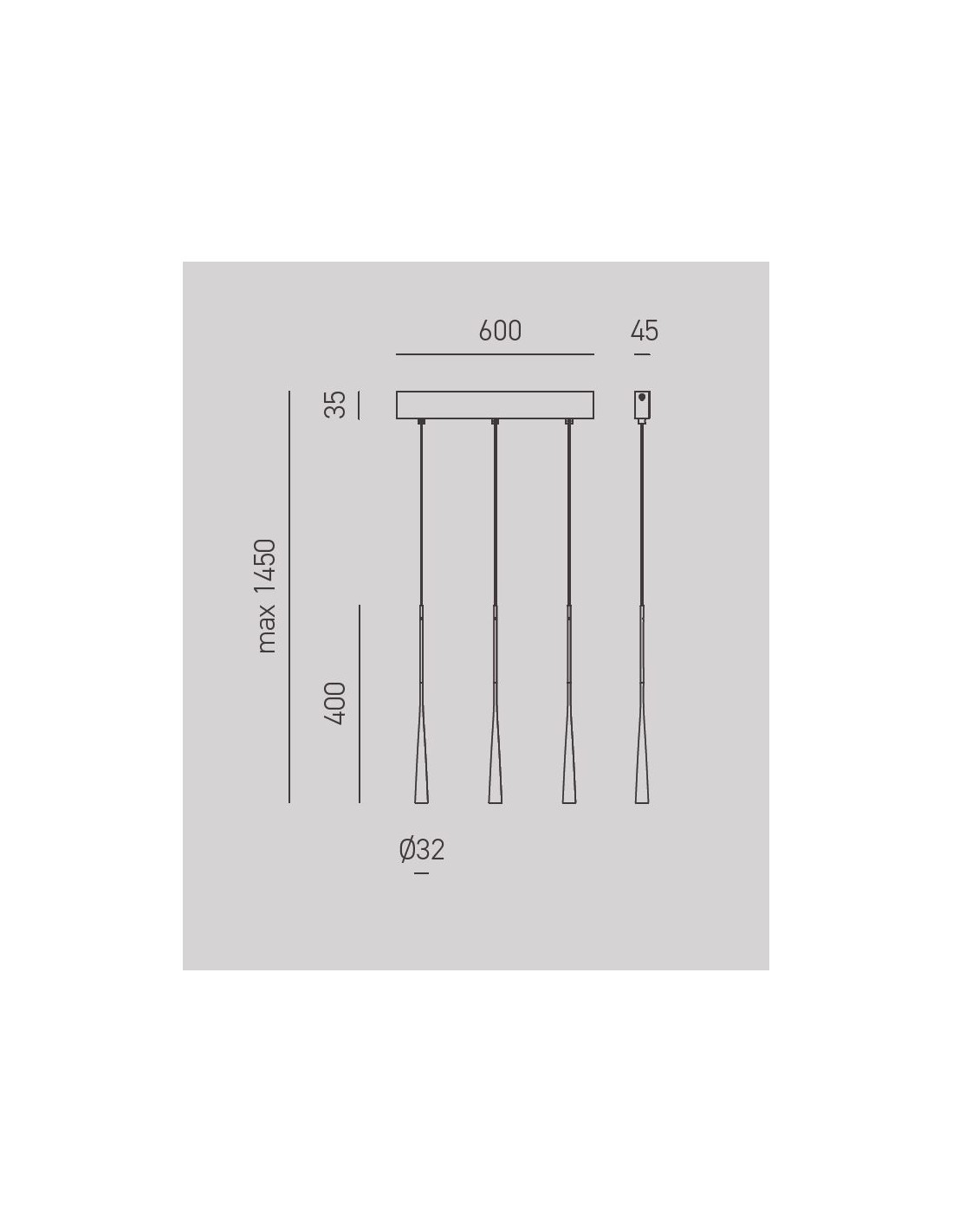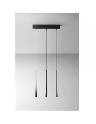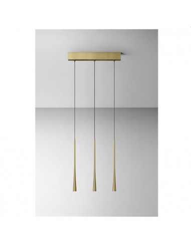 Questa sospensione a 3 luci della serie DAFNE del marchio Gea Luce é realizzata interamente in alluminio.