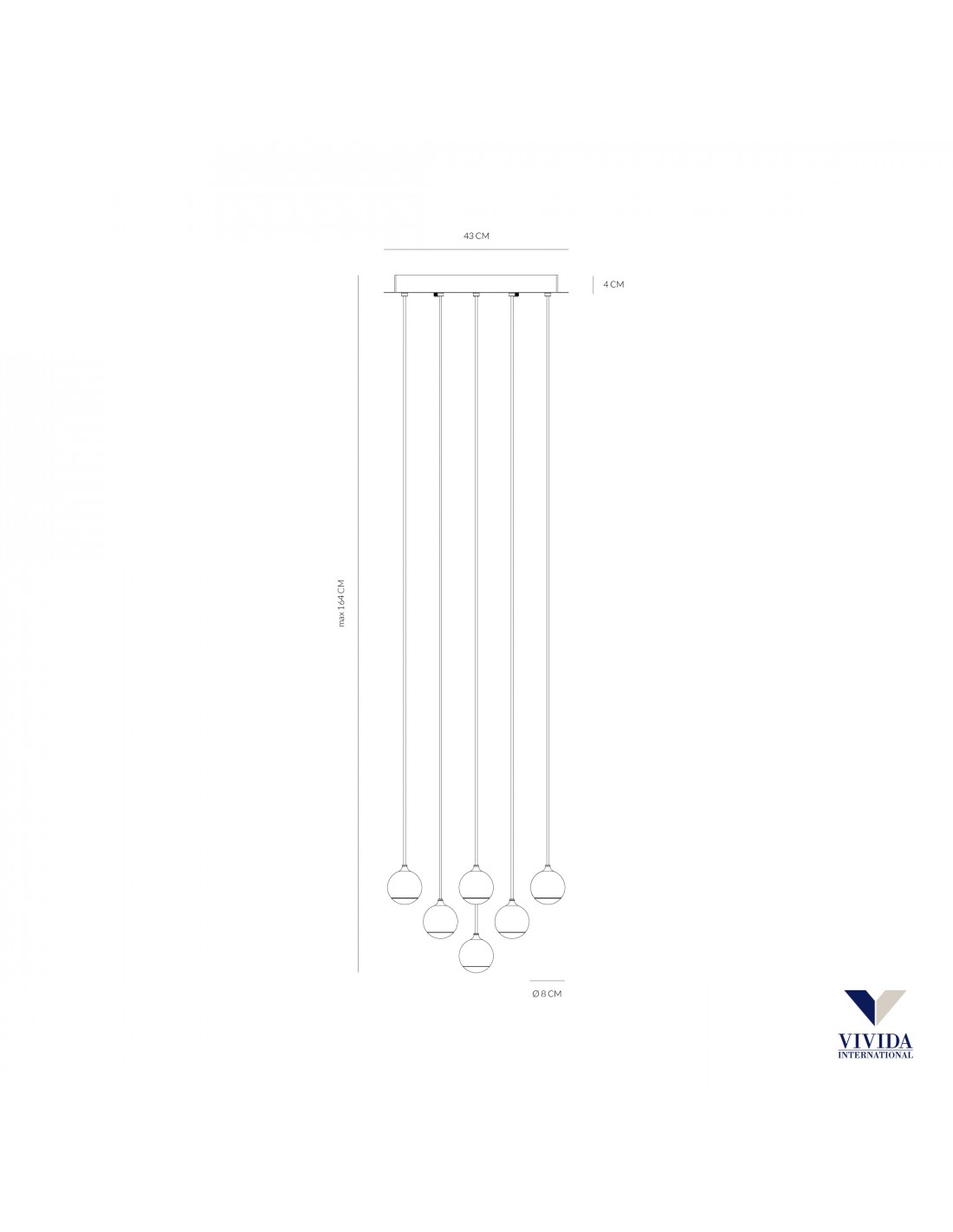 La famiglia di lampade a sospensione SHALLOW del marchio VIVIDA INTERNATIONAL è caratterizzata da sfere in metallo che scendono a cascata illuminando direttamente verso il basso.
