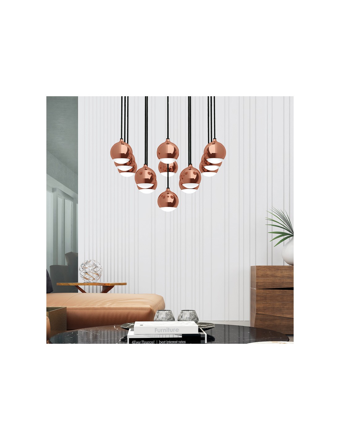 Sospensione Cascata Shallow 13 Sfere Led 40w 3000k Oro Rosa Vivida International