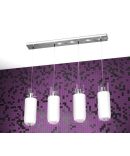 Questa lampada a sospensione è realizzata in metallo cromato con 4 diffusori cilindrici in vetro pirex satinato e bordi trasparenti. Grazie al supporto da fissare al soffitto è possibile orientare i diffusori a piacimento.