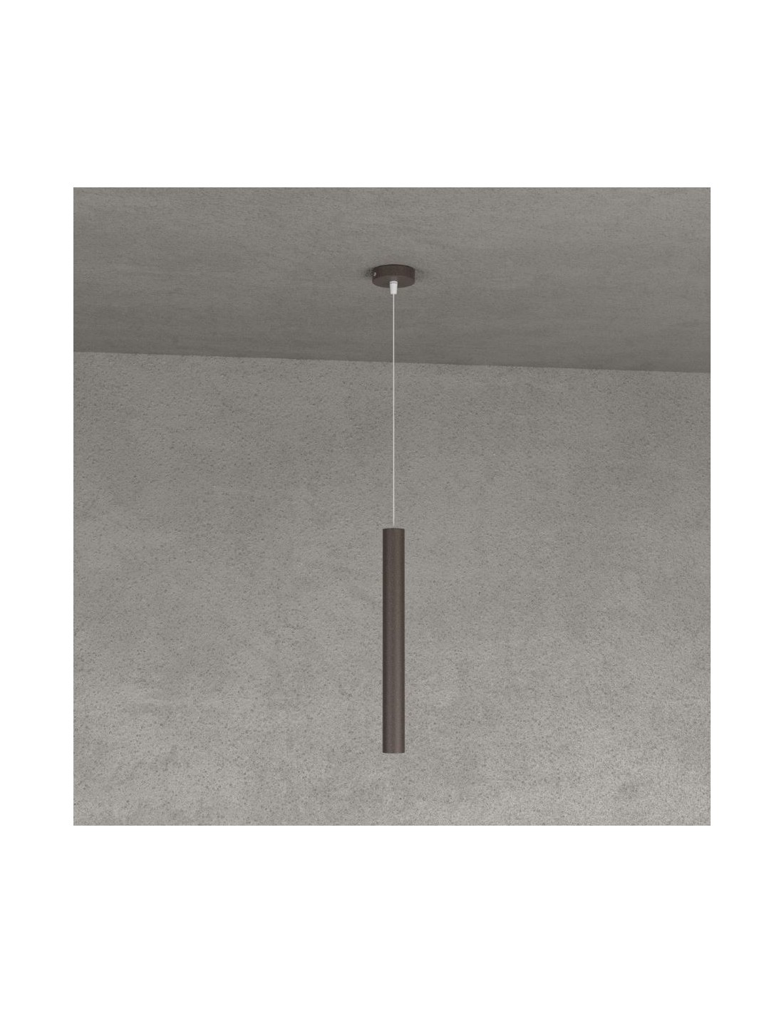 ROUND TUBE S1 è una lampada a sospensione del brand italiano Top Light, realizzata con corpo tubolare a sezione tonda in metallo ultrasottile verniciato marrone, rosone rotondo e cavo regolabile in lunghezza.