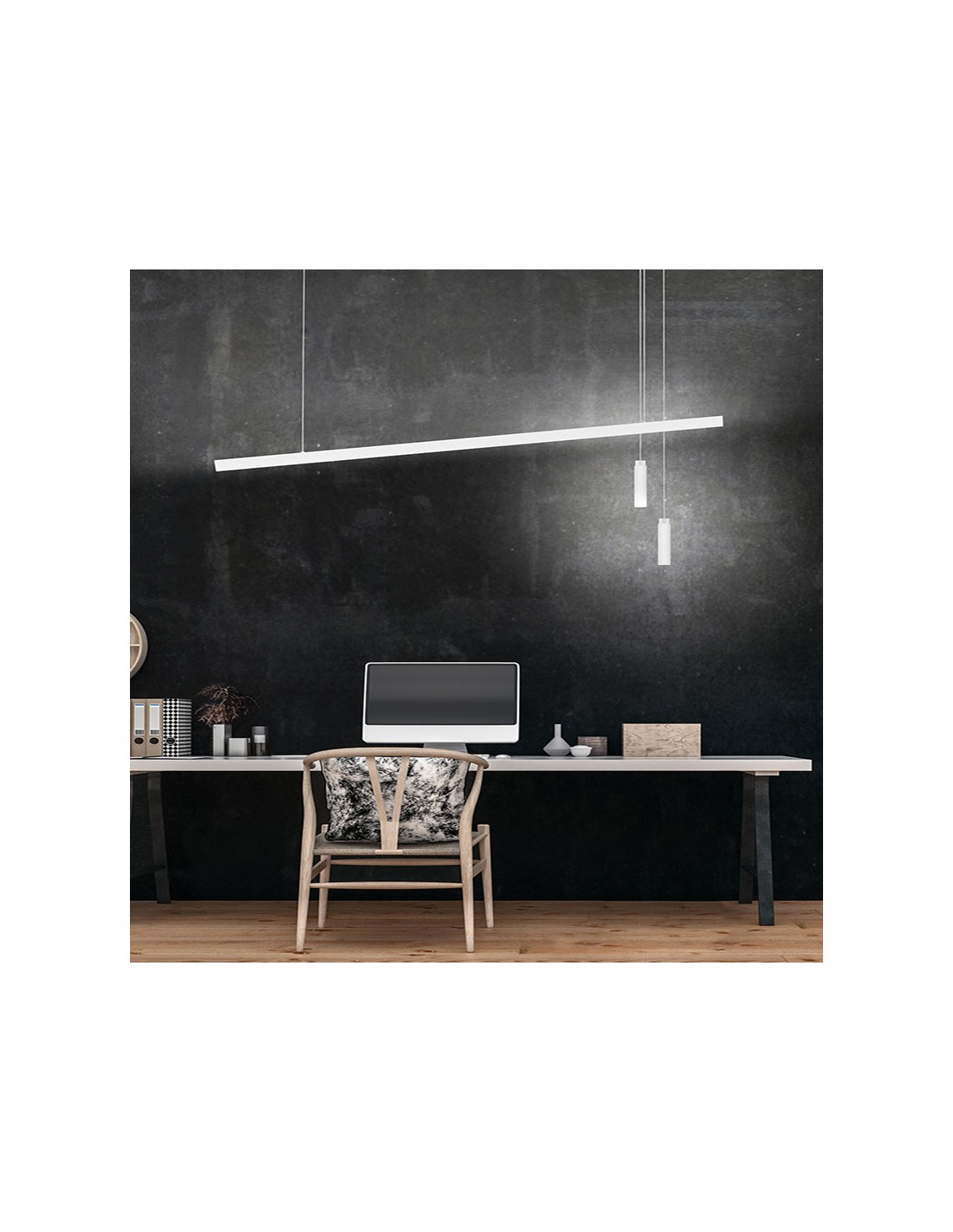 La sospensione FUNAMBULIST del marchio VIVIDA INTERNATIONAL presenta una struttura in acciaio verniciato bianco, composta da un asta rettangolare e da due corpi cilindrici che insieme danno vita a una composizione che illumina lo spazio con originalità ed eleganza.