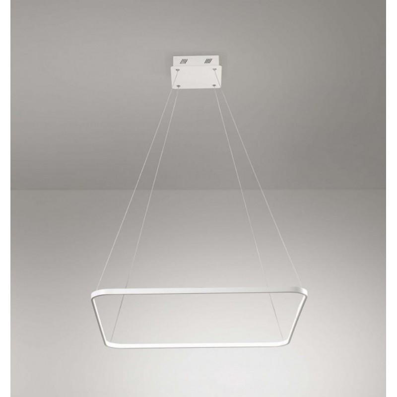 Sospensione della serie ALURING di Affralux con struttura quadrata in alluminio verniciato bianco satinato e alloggiamento alimentatore in tinta.
