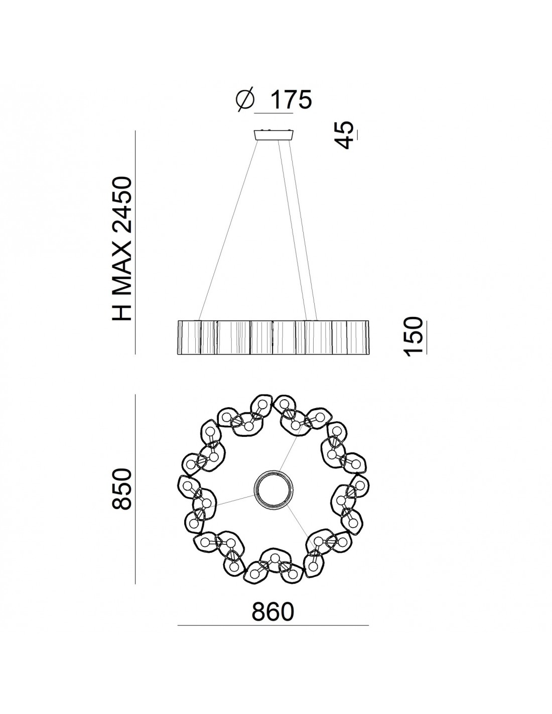 Un lampadario di alto design che crea affascinanti sfumature, ideale per illuminare in maniera diffusa e al contempo arredare diverse tipologie di ambienti.
