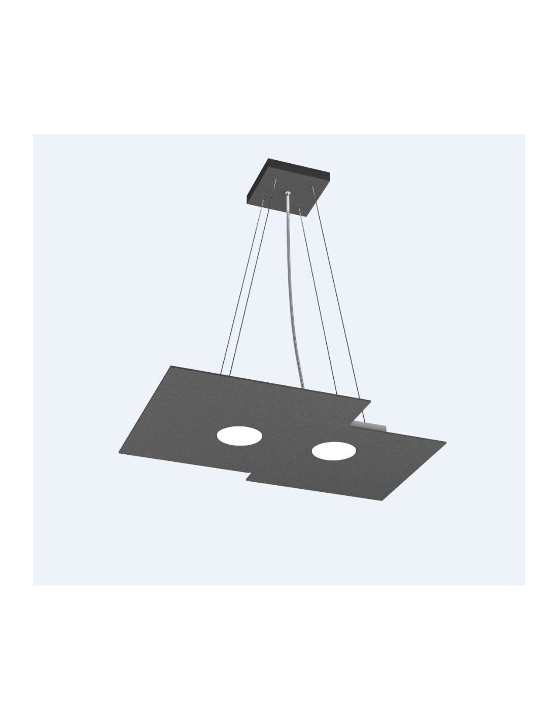 La sospensione della serie Plate, prodotta dal brand italiano Top Light, è composta da una sottile lastra rettangolare in metallo verniciato con incisioni che ne impreziosiscono la forma, sostenuta da 4 cavi d’acciaio regolabili in base all’altezza dal soffitto che si vuole ottenere.
