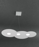 Questa sospensione della serie Cloud, prodotto Top Light made in Italy, è composta da una sottile lastra in metallo verniciato, con incisioni che ne definiscono la forma, sostenuta da quattro cavi d’acciaio regolabili in base all’altezza dal soffitto che si vuole ottenere.