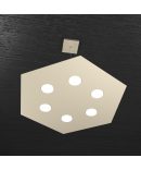 Questa sospensione a 6 luci della collezione HEXAGON è composta da una sottile piastra a forma di esagono realizzata in metallo verniciato. Questo modello permette di aggiungere una luce disposta sul lato superiore della piastra per illuminare il soffitto, in modo da uniformare la luminosità. Cavi regolabili in lunghezza.