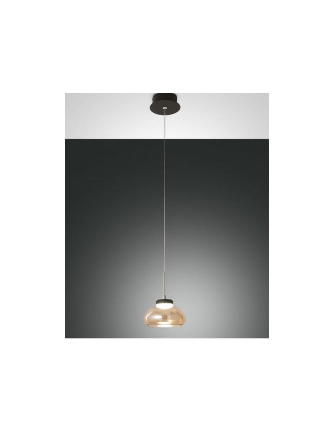 - Questa lampada a sospensione della serie ARABELLA presenta una struttura in metallo verniciato nero e diffusore in vetro soffiato colore fumè. Cavo regolabile in lunghezza.