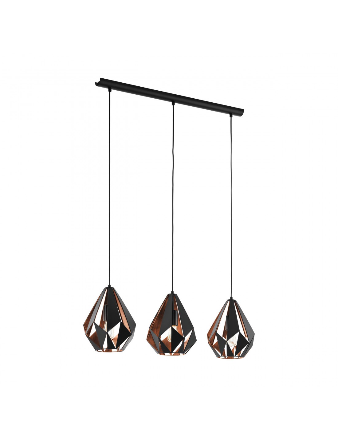 Sospensione Lineare 3 Paralumi Nero E Rame Carlton Eglo