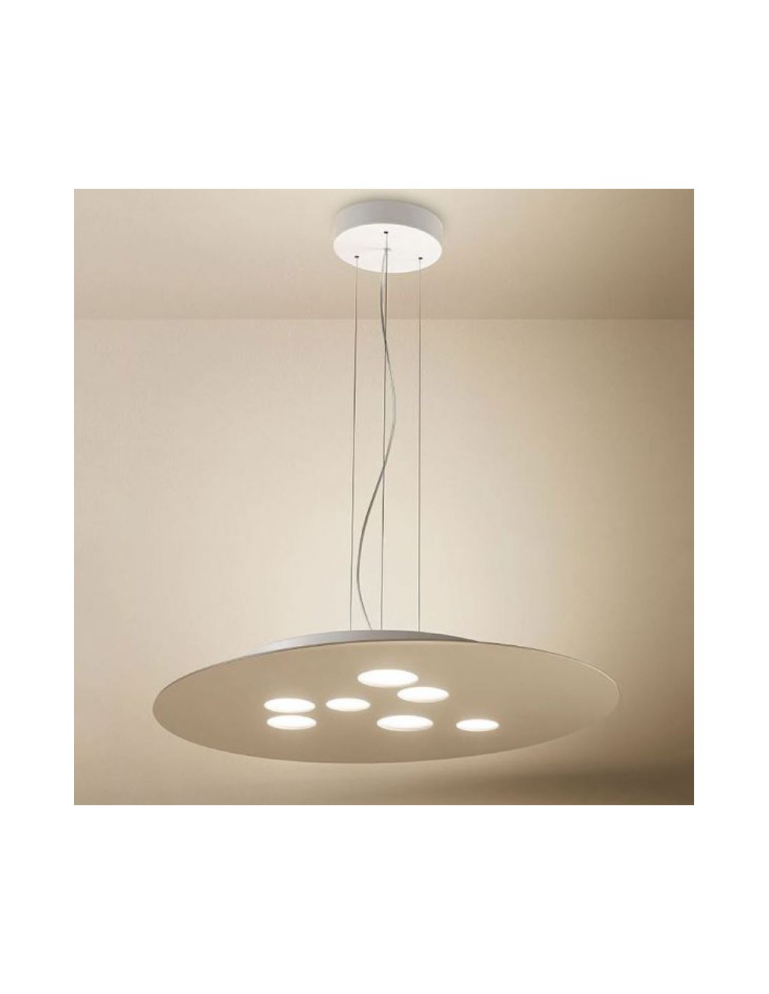 Dalla leggerezza dei materiali e della forma, abbinata alla tecnologia Led, nasce una sospensione versatile e di facile installazione che illumina verso il basso e in modo uniforme ogni spazio della vostra casa moderna o contemporanea, dal soggiorno living alla camera da letto.
