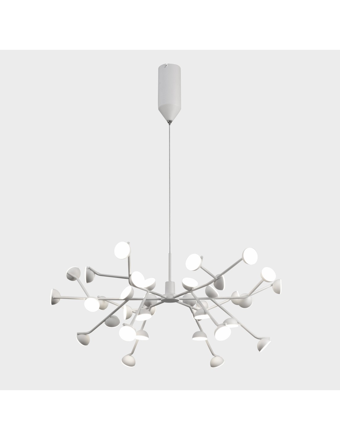 • Questo modello a sospensione é composto da una struttura lineare in alluminio bianco matto composta da diversi piccoli diffusori che sprigionano una grande quantità di luce in tutte le direzioni, permettendo così di uniformare la luminosità in tutta la stanza. Cavi in acciaio regolabili in lunghezza.