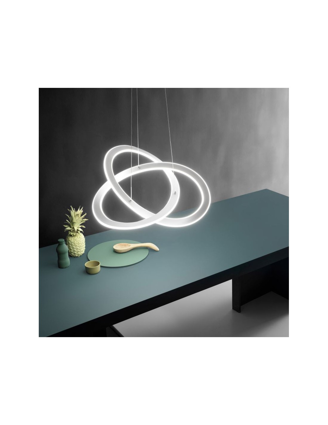 Un lampadario dal design autentico con delle linee eleganti e avvolgenti, perfetto per arredare e illuminare con stile e ottima luminosità ambienti moderni, dalla sala da pranzo alla zona living.