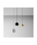 Questa sospensione singola della serie GUYA del marchio Gea Luce é composta da rosone rotondo e sfera diffusore in alluminio.