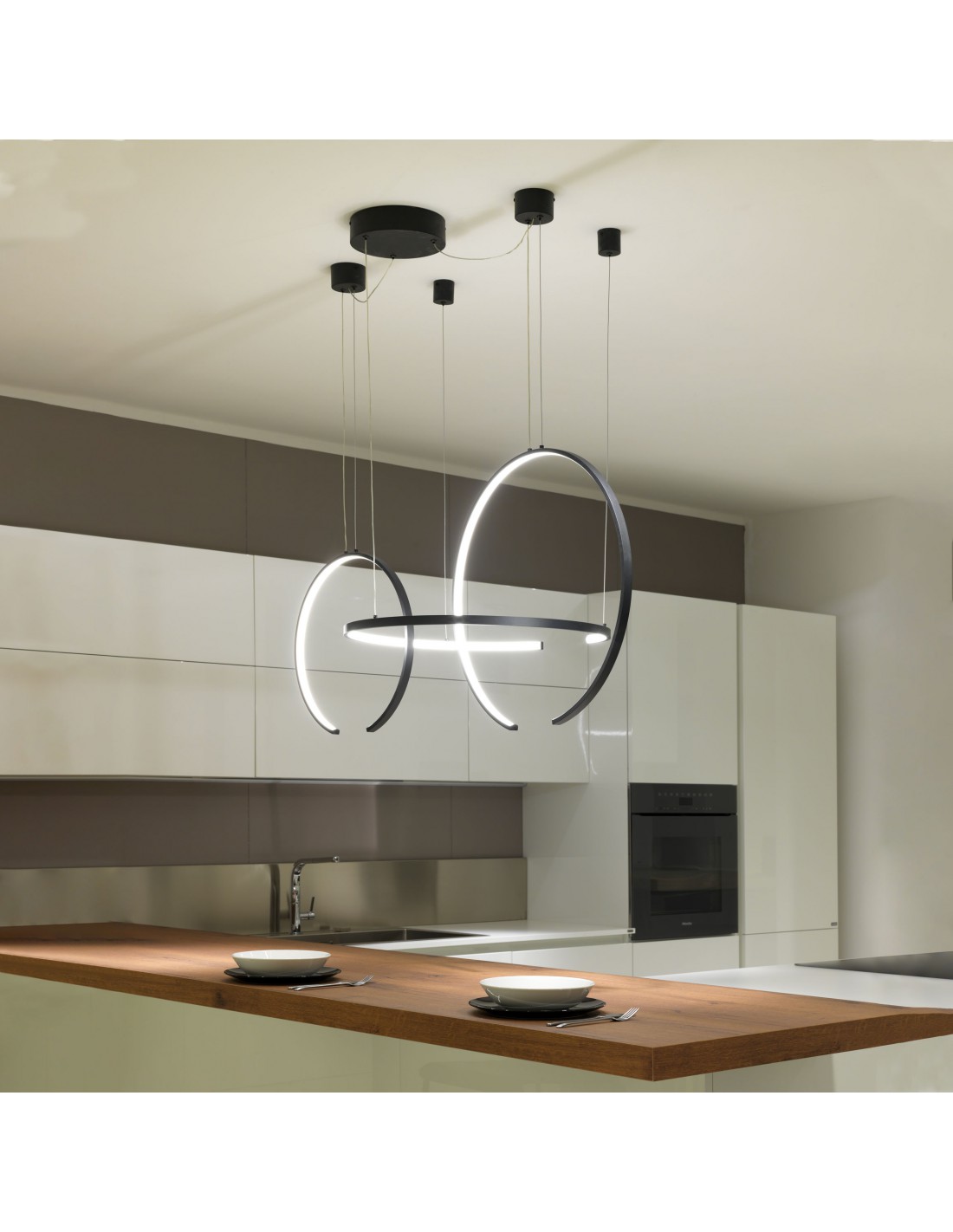 Sospensione Olympic Nero 3 Semicerchi Led 75w 3000k/4000k Vivida International