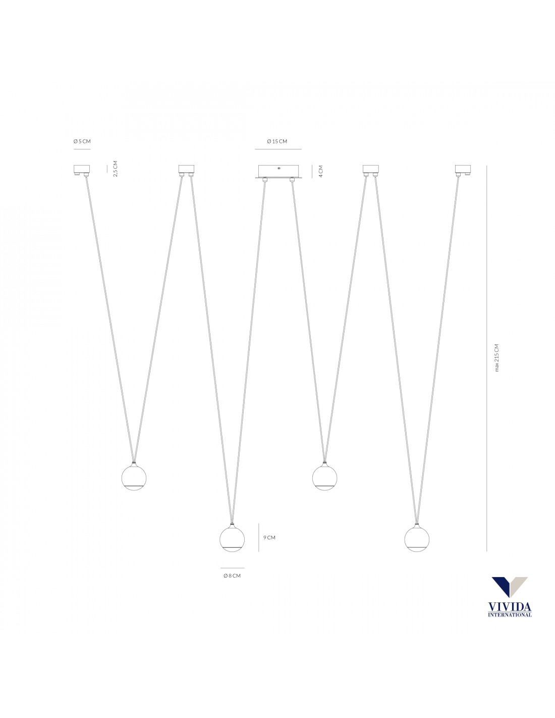 La famiglia di lampade a sospensione SHALLOW del marchio VIVIDA INTERNATIONAL è caratterizzata da sfere in metallo che scendono a cascata illuminando direttamente verso il basso con una luce accogliente.