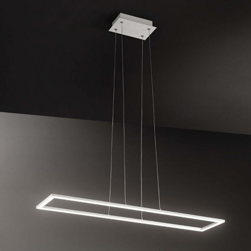 Lampadario a sospensione della serie QUATTRO di Affralux, realizzato con profilo rettangolare in alluminio verniciato bianco e finitura sabbiata.