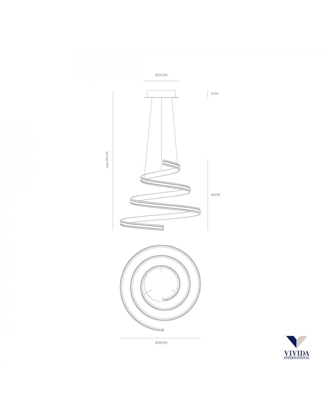 La sospensione SPIRAL del marchio VIVIDA INTERNATIONAL si caratterizza per la sua luce che si sviluppa dall’alto aprendosi come un cono diffondendo luminosità dimmerabile nell’intero ambiente.