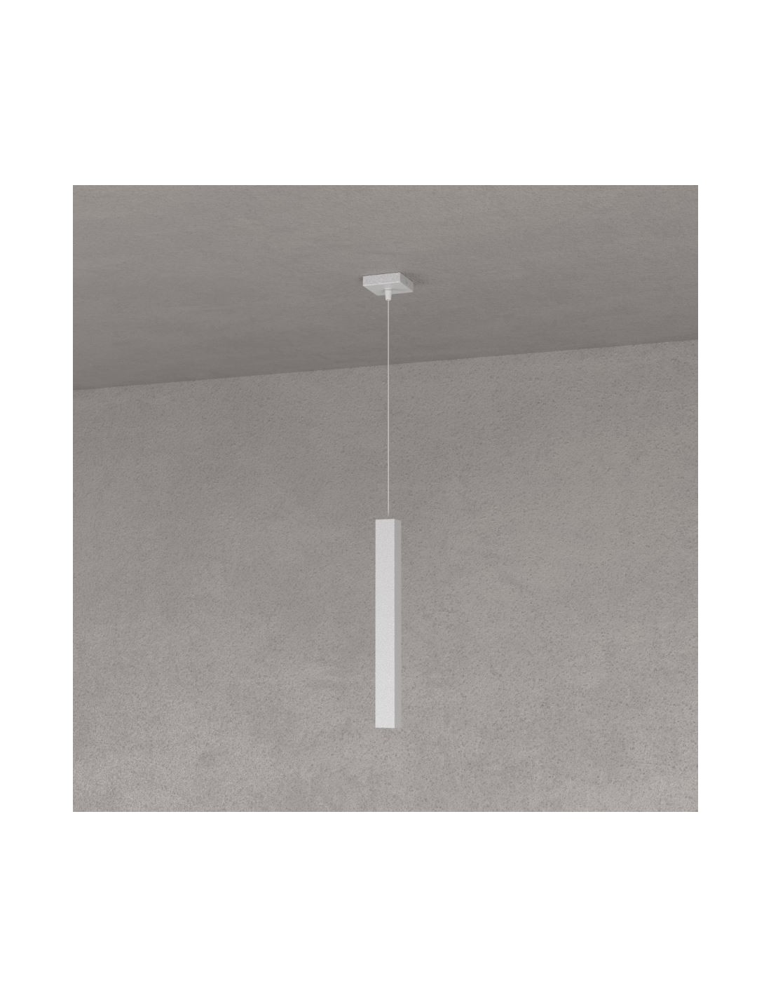 ROUND SQUARE S1 é una lampada a sospensione del brand italiano Top Light, realizzata con corpo tubolare a sezione quadrata in metallo ultrasottile verniciato grigio, rosone quadrato e cavo regolabile in lunghezza.