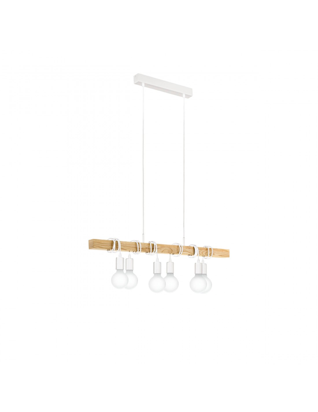Sospensione Townshend 6 Luci Bianco Con Legno Naturale L100 cm Eglo